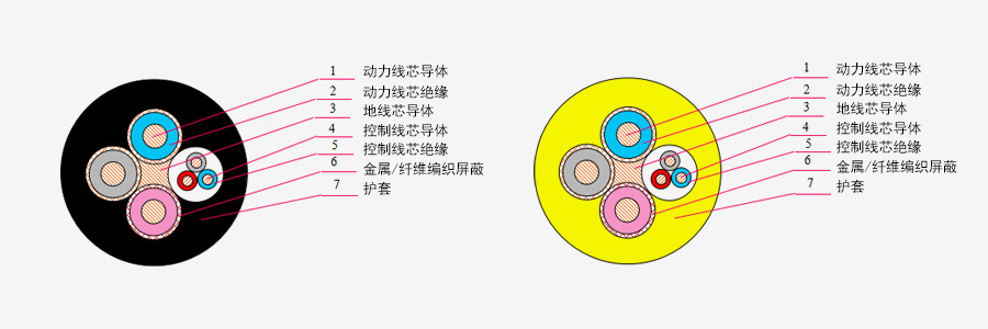 MCPTJ礦用采煤機(jī)屏蔽電纜的結(jié)構(gòu)3X70+25+4X4